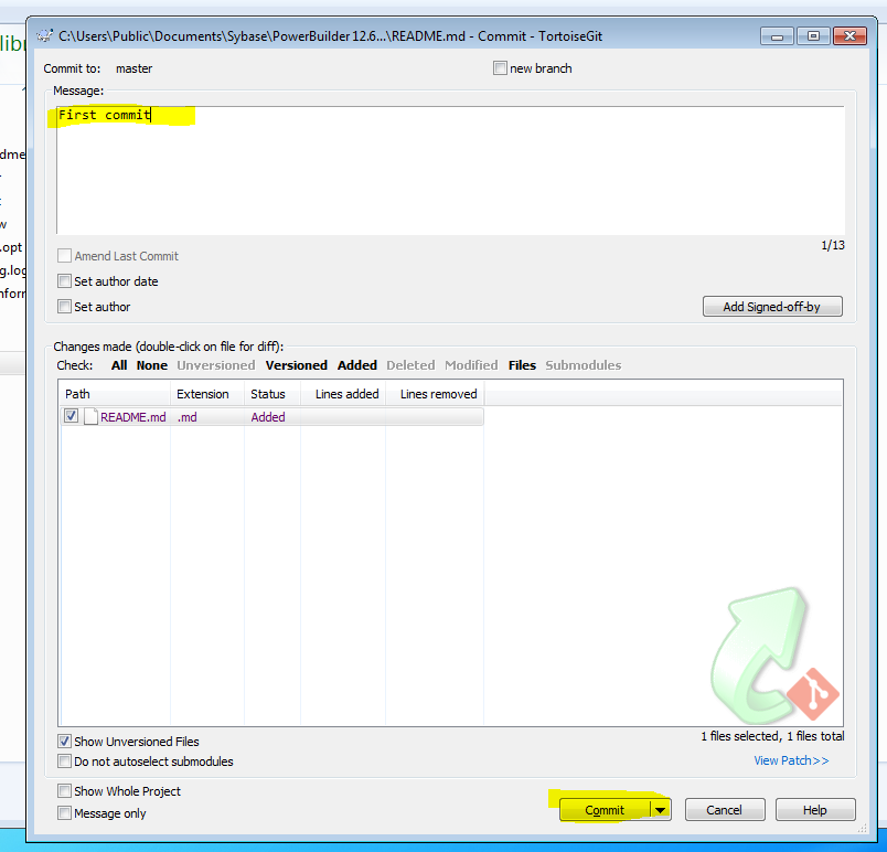 The Git MSSCCI provider expects the PowerBuilder project to already be in a local Git repository, so we're going to create that now.