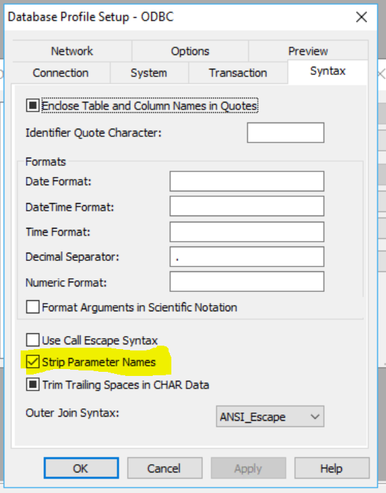 SQLCA.DBParm = "ConnectString='DSN=PostgreSQL35W;UID=dba;PWD=sql',StripParmNames='Yes'"