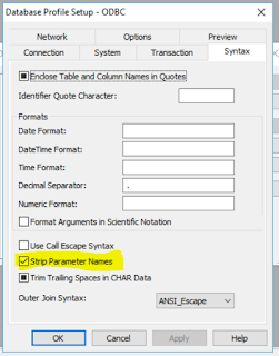 Remember that the connection string that you use for the application will also need the StripParameterNames options as well.