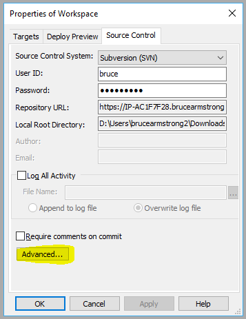 Workspace Source Control Advanced Properties