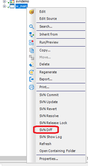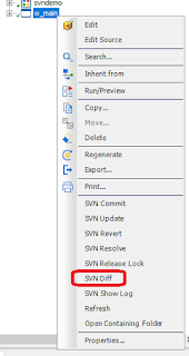 The first two new items are "SVN Lock" and "SVN Release Lock". Those do what you would expect, allow you to lock an object to discourage other developers from making changes to it while you're making your changes. Note that Subversion supports "breaking" and "stealing" locks, so it's still possible that another developer could make changes to an object after you've locked it.