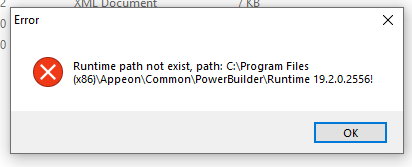 The runtime seems to be looking for PB Runtime 19.2.0.2556, but the current PB2019 R3 is actually Runtime 19.2.0.2670.
