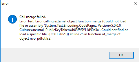 Unfortunately when using the "Concatenate (PdfSharp)" option, I receive an error (see attachment). Any idea how to resolve that? Thanks!
