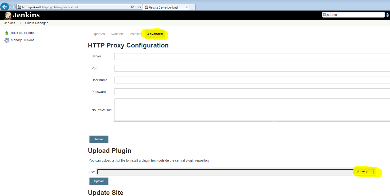Do it again for the second HPI file. You'll may need to restart the Jenkins server after installing the plugins before you can use them.