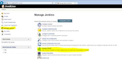 Go into Jenkins and select the "Manage Jenkins" option, and then the "Manage Plugins" link on that page.