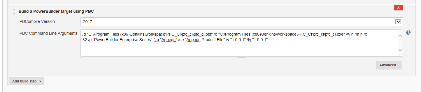 Note that the workspace file is a new requirement, and something that isn't part of the source pulled over from the source control server. You'll have to copy or create a workspace file in the Jenkins workspace in order to use the PowerBuilder IDE command line approach.