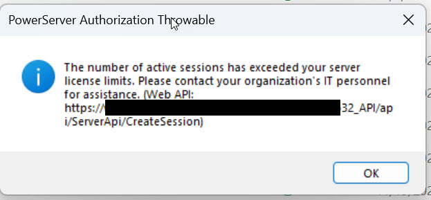 We came across the attached error while testing application built using PS 2022 R3. The QA person waited for 10 mins and this error didn't come up again. When does this error occur and is there a configuration that needs to be set so it does not exceed the number of session. We have only 1 user testing the application so surprised to see this error.