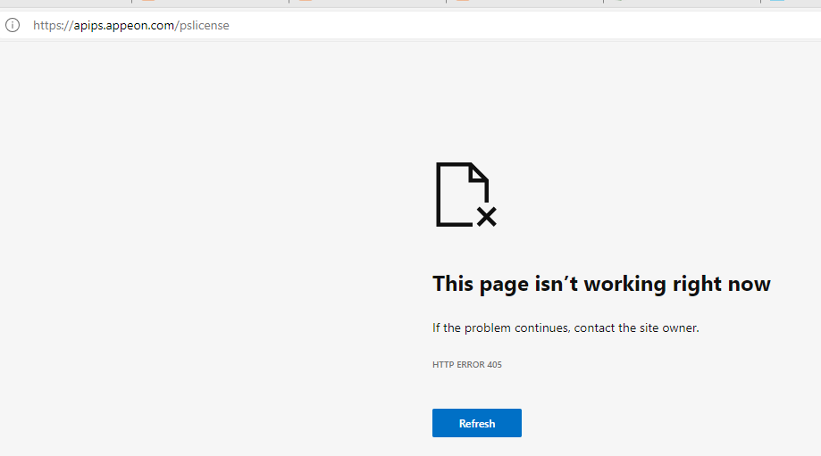 I get 'This page isn't working right now. HTTP Error 405. Are the license server down or it is something else?