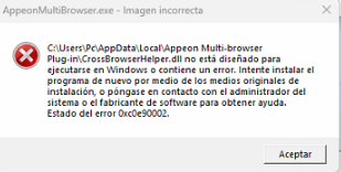 Currently, on some computers running Windows 11 24h2, the Appeon multibrowser plugin is showing the following error when executed: