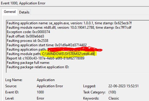 After installation of windows OS 10 update (KB5026361) we are observing the application crash due to ntdll.dll. We are using Appeon Powerbuilder 2021 (Build 1509). When We revert the OS update back to (KB5025221) the application started working as usual.