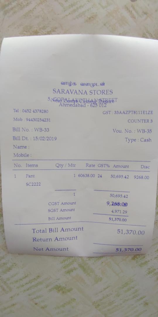 Bill Date : 18/02/2019 Type : Cash