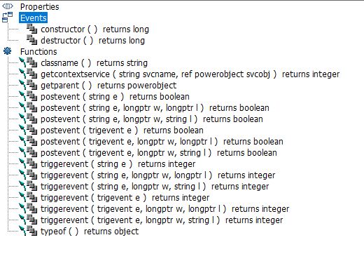 A common ancestor nonvisualobject would implement the events/methods in the attached screen grab.