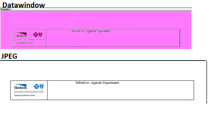 Due to the fact that I can't display this entire report due to security concerns, I will show the top of the datawindow and the top of just the jpeg image.