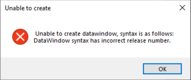 DataWindow syntax has incorrect release number.
