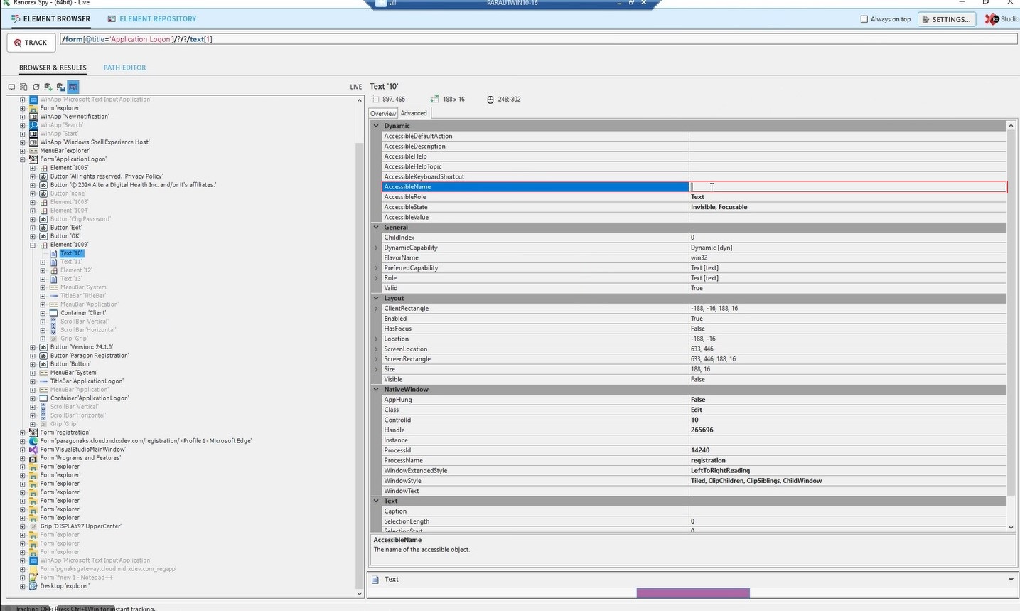 Automation tool Ranorex Spy is not able to find the xpath of text label element.