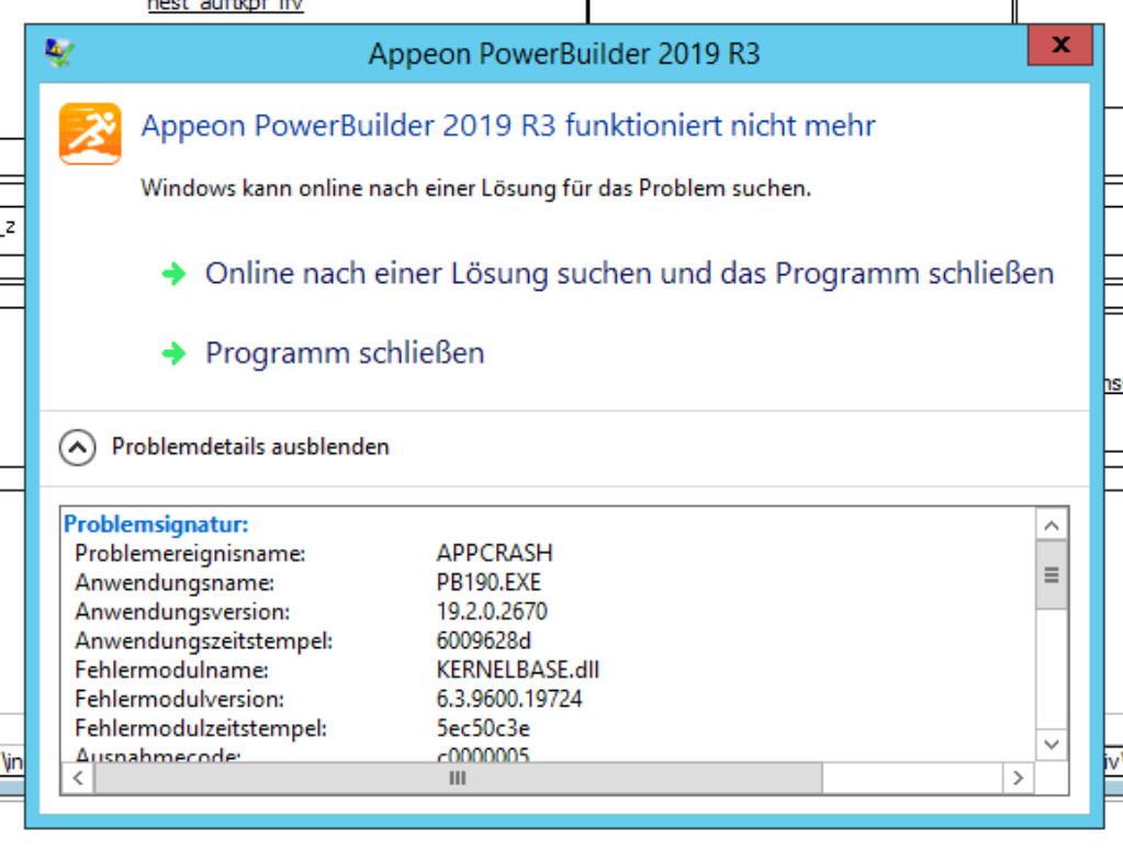 Appeon PowerBuilder 2019 R3 funktioniert nicht mehr