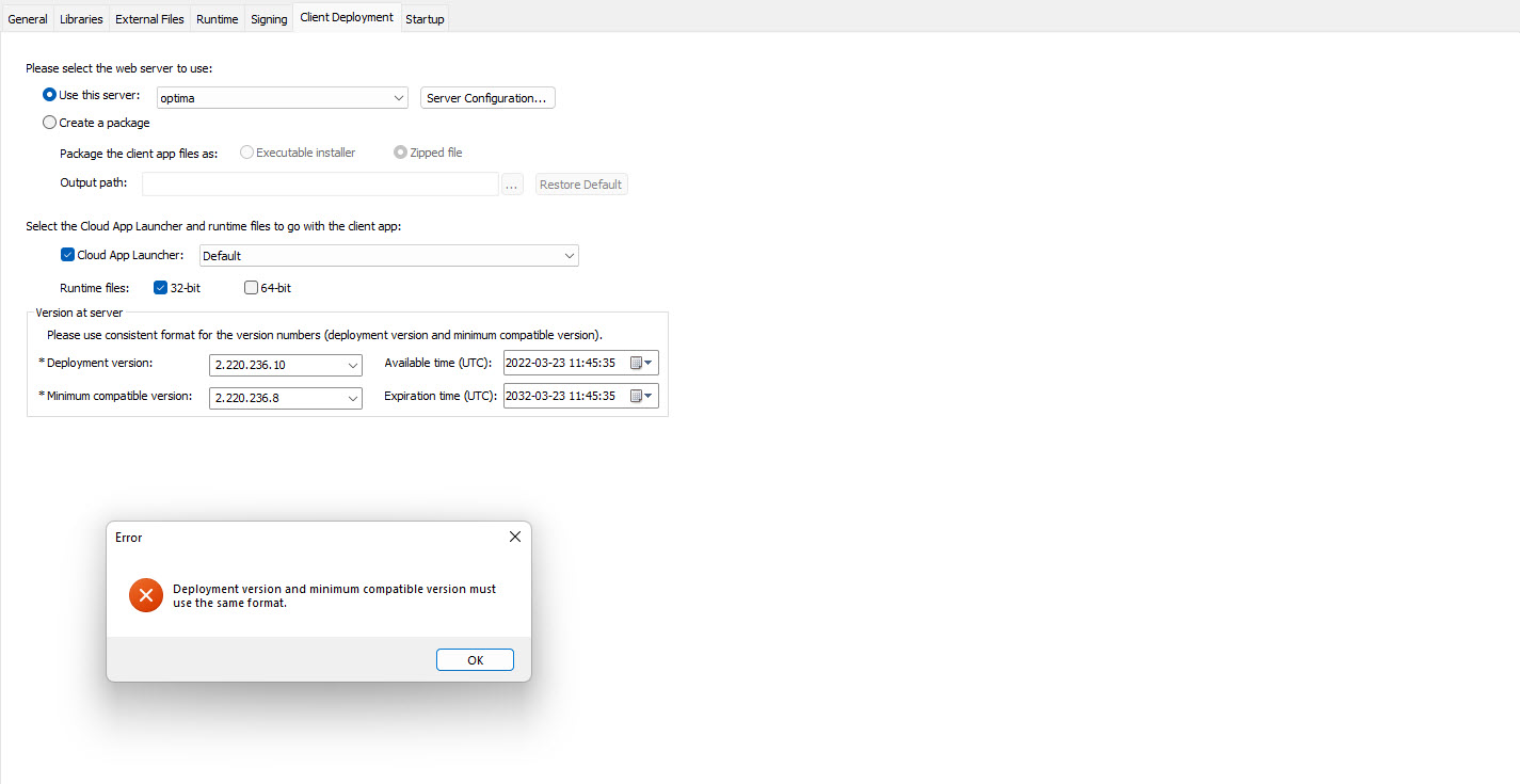 I'm not sure if it's a bug but PB2022 R2 behaves differently to PB2022 when I'm deploying a PowerClient project. It seems like it's testing length of deployment version string. So deploying version > X.X.X.9 is not possible anymore unless you count with it from the begining. See the attached picture.