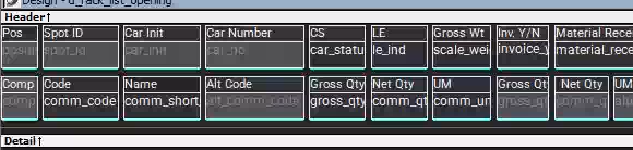 I have a datawindow where I have (text) labels above each column. It is really busy and tall when there are many rows. The text above the column gives the appearance that it is one 'square'. What I want to do, is only display the text above the column when the row is selected. Looking below is what I want - It is actually two rows - the second row of data has the labels removed and the detail band is not as high. I was going to make the labels invisible on a non-current row and 'squish things together' but I can't seem to do it for an individual row. The detail band doesn't have an expression for the height.