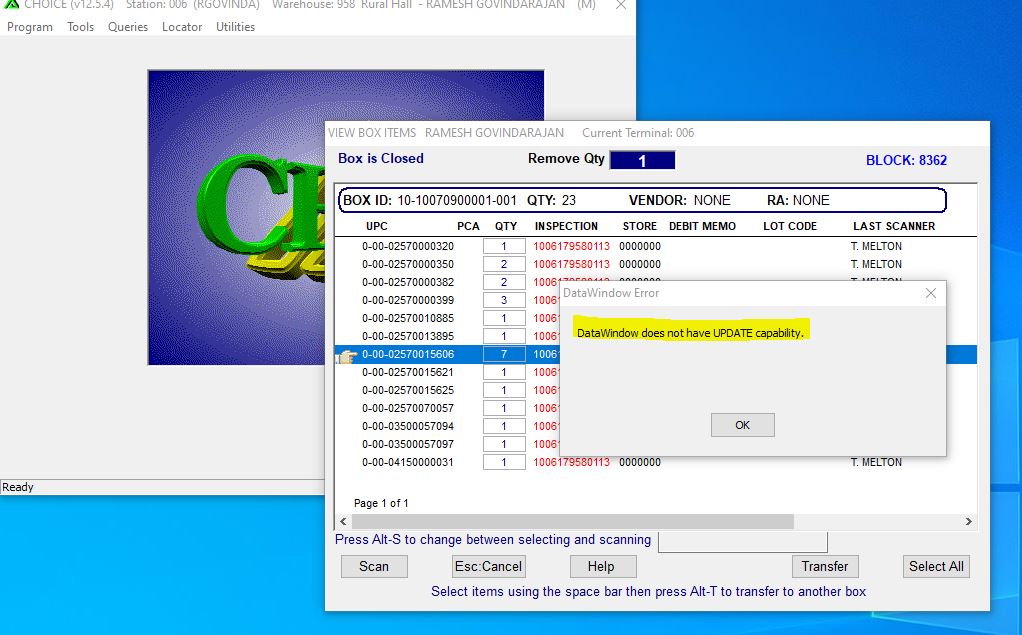Now our data windows is no longer have update capabilities and we are getting an error whenever the dw.update() statement is getting executed.