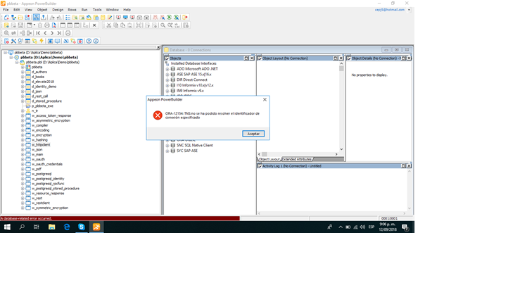 Instale el Power Builder 2017 R3, tengo el siguiente problema no me conecta a la base de datos.