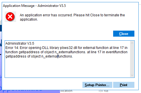We are getting 64-bit executables are throwing "Error opening DLL library pbws32.dll external function at line 17 in function getipaddress of object in event/function".
