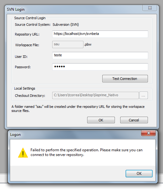 Failed to perform the specified operation. Please make sure you can connect to the server repository.