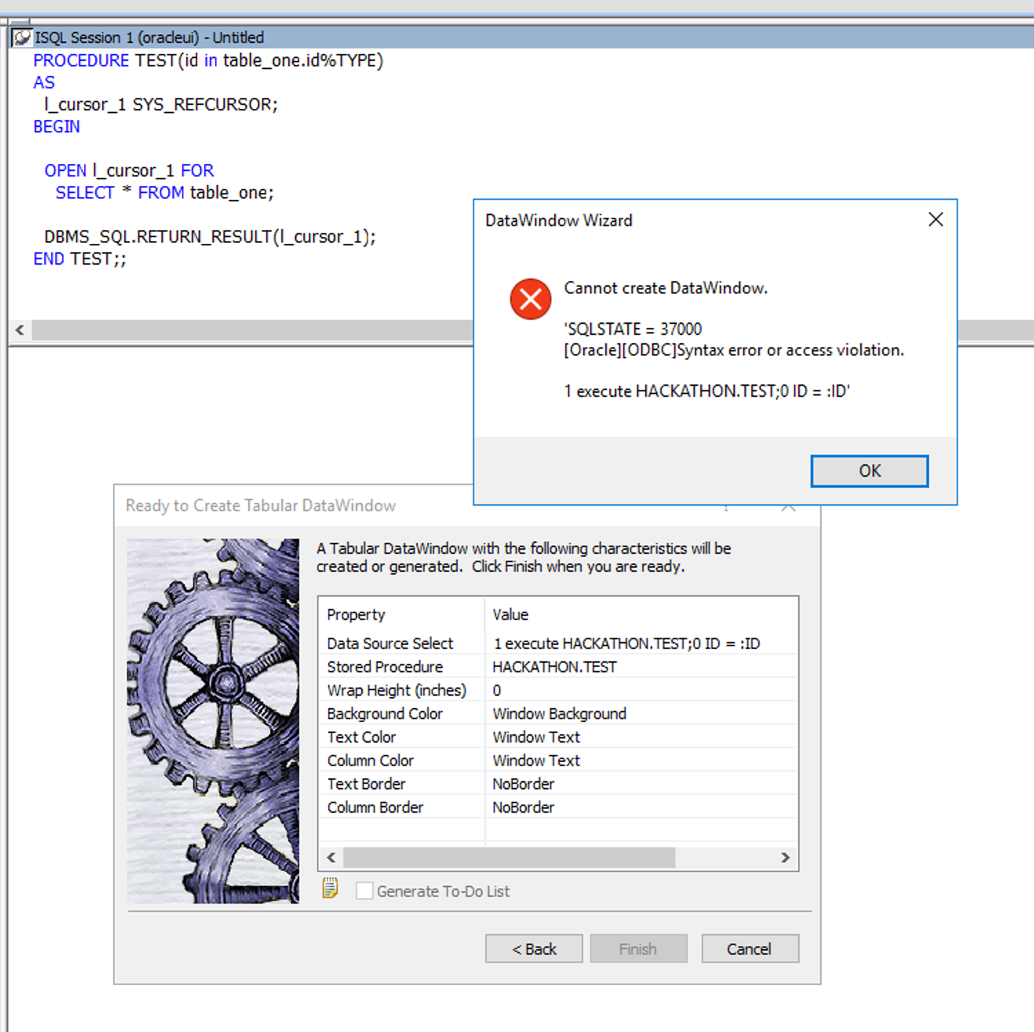 Cannot create DataWindow.