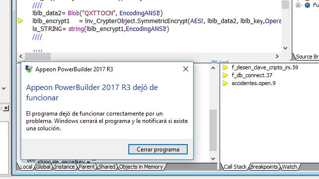 When i use a Crypter Object i have a error with Power builder 2017 , because it close .