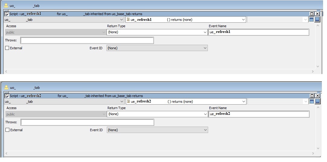 But when i open powerbuilder and add a space, new-line any where in this uo_caller,line iuo_obj.event ue_refresh1 calls ue_refresh1.