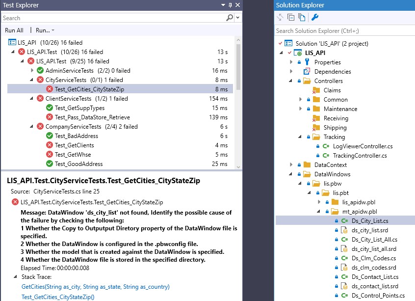 We are using xUnit for our unit tests. Tests – very simple ones – will often fail with the attached error when doing a 'Run All Tests' operation. And it is random. If I select the failed test that is highlighted below and do a 'Run Selected Test' it will pass. If I perform a ‘Run All Tests’ operation again, the tests that fail will be different than the previous attempt. The error suggests that it can’t find the datawindow but both the cs version of it and the srd are in the project. It also exists in the config file (attached). Am I doing something incorrectly here or this this possibly a bug?