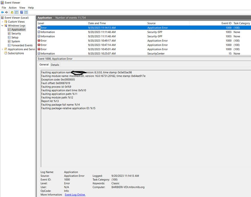 Our client complains that whenever they are trying to export a report in PB application they are getting the application error as attached in the screen shot.