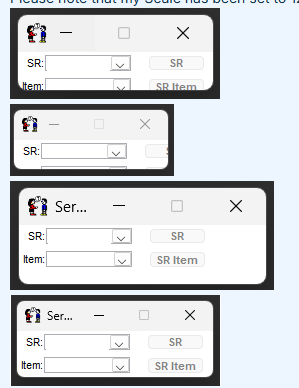 When opening the item dropdown from the Service Request Key Window, the same elements are enlarged but the dropdown menu itself is also enlarged.