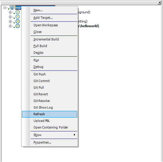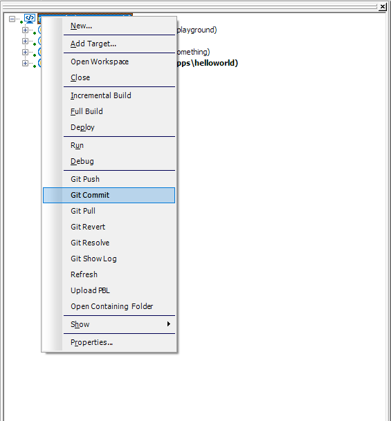 I've noticed there are no HotKeys for the new Git commands that appear on the workspace right-click menu, nor do I see any toolbar options for them. Is there some way we can access the new Git commands (specifically Git Commit and Refresh) from anywhere else within the IDE besides the right-click menu of the workspace? Is there a way we can invoke those commands externally outside the IDE on a running instance of PB 17 R3? Access to those is crucial at this point in our Git process - at this point we're relying on a developer to always remember to do a full Refresh after a branch change instead of it being able to be triggered automatically or programmatically.