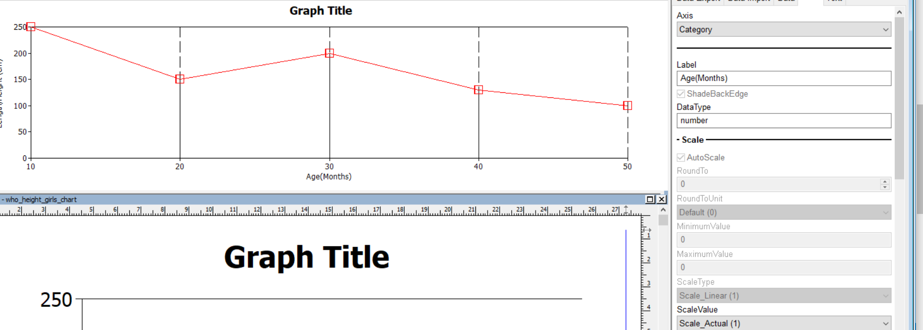 Is there a way to enter a scale on the category section of a line graph within infomaker ? The option appears grayed out on category and i am unable to input any scale, i am able to change the value scale but i need to adjust both scales.