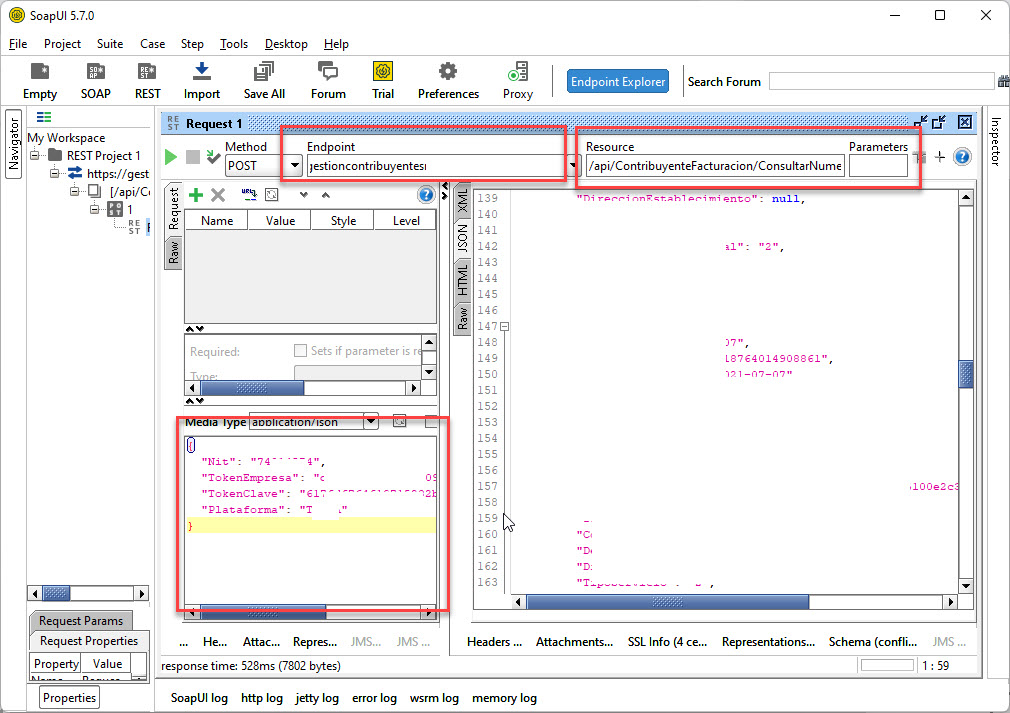 With the SOAP Ui program, I perform a test, but I can't find how to pass the ENDPOINT parameter to it.
