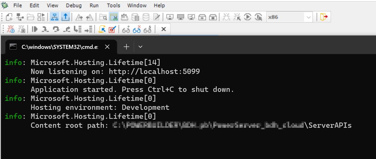 When we start the debugger, the Kestrel server starts: