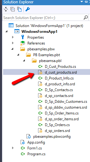 When I generate C# models from PB, I see there is .cs and .srd files in the C# project, I see that the .srd file contains data window information, but I couldn't figure out how to use it.