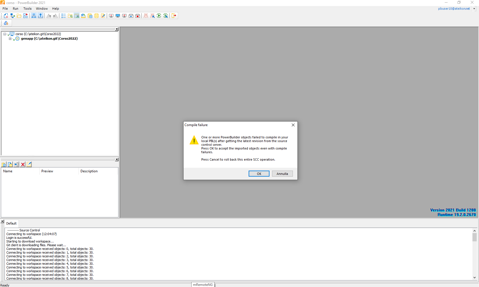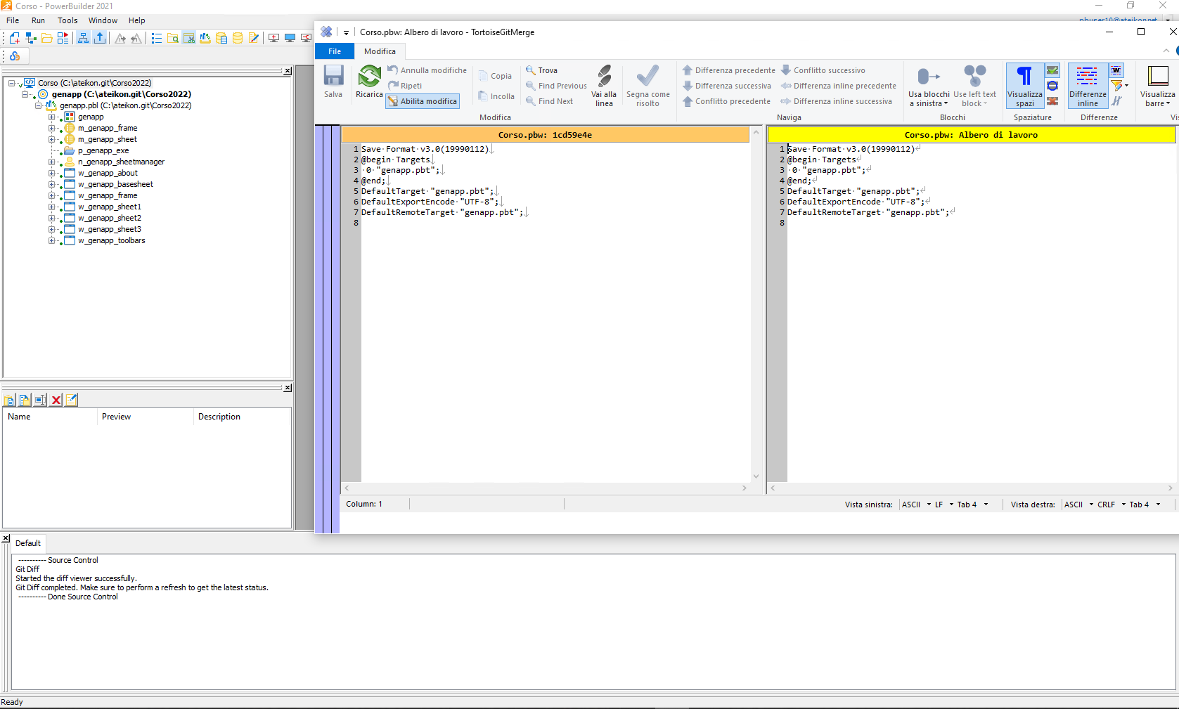 Checking all objects from Powerbuilder I notice that the *.pbw file appears to have been modified.