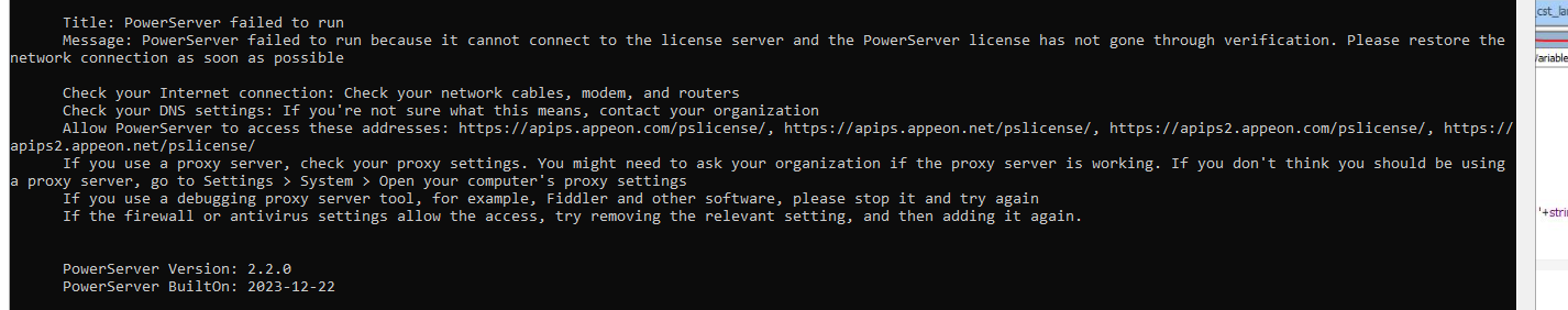 Running local kestrel server for powerserver is giving error that it cannot reach the powerserver license server. This use to work fine for us.
