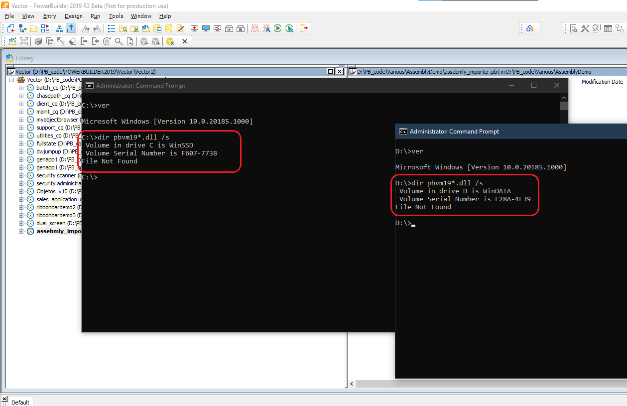 I've created a small machine code executable (with a traditional project object, not the new C/S one) and it fails for not finding in the first place "PBVM.DLL" (not even the name is correct as it should be "PBVM19x.DLL", but that's not the problem).