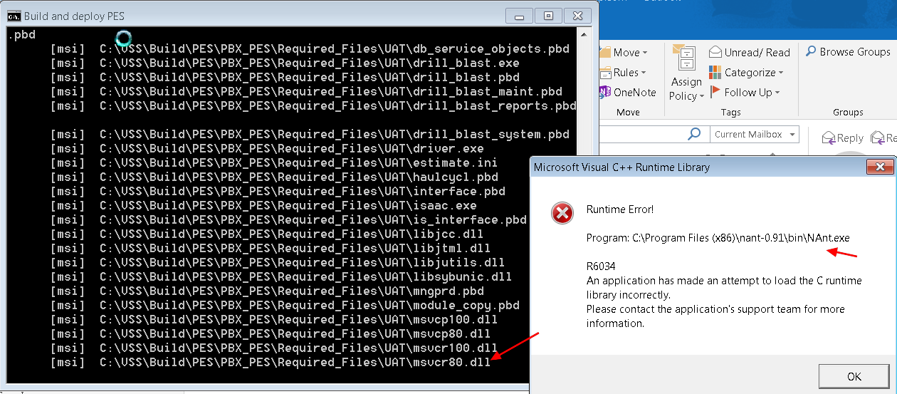 When using Nant.exe to build an MSI package I get a R6034 error related to the MS Visual C++ runtime library.