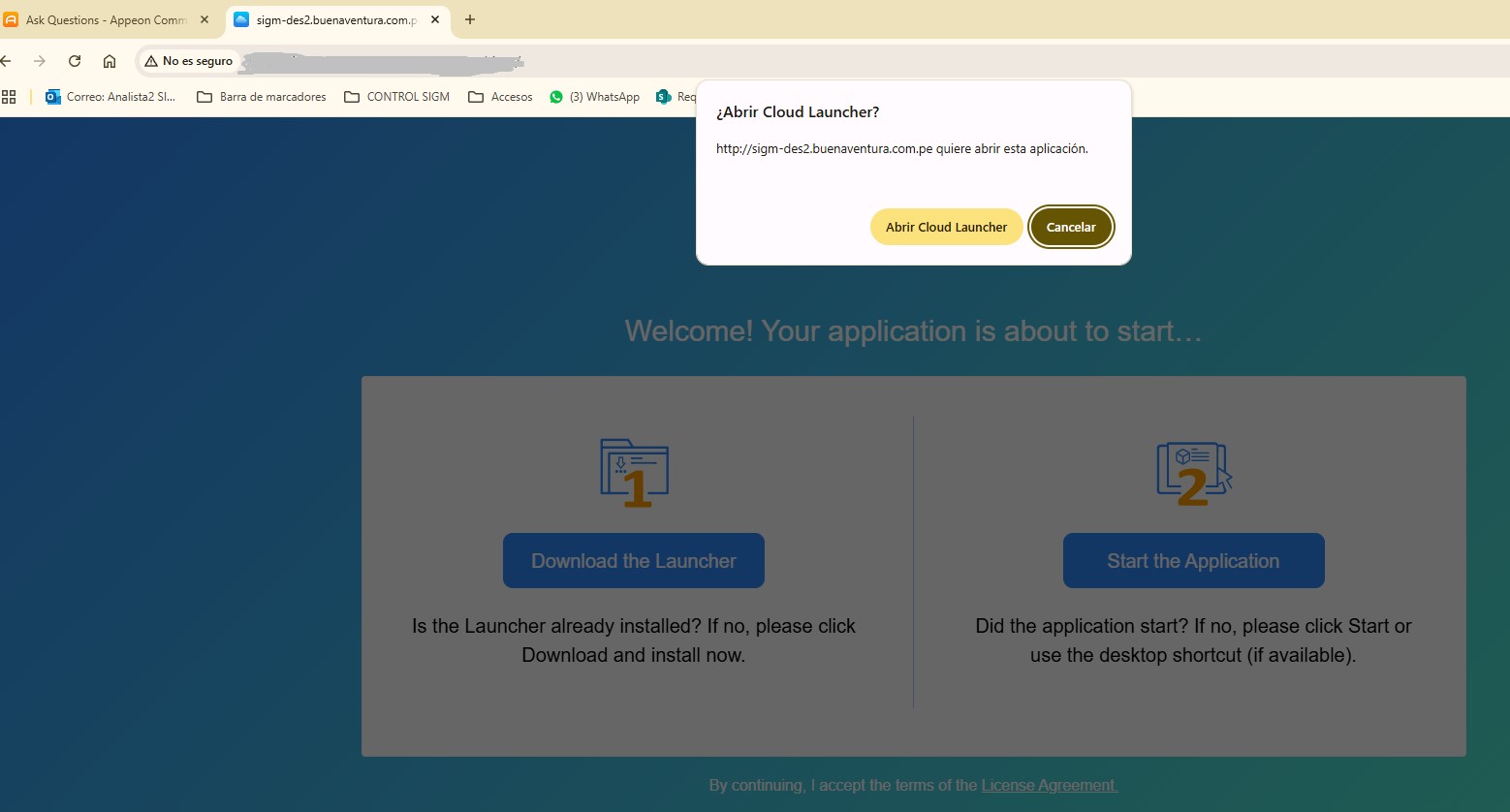 El cloudlauncher descarga correctamente, sin embargo no se ejecuta. La solución temporal que hemos encontrado es ejecutar el cloudlauncher desde la ventana de ejecución de Windows.