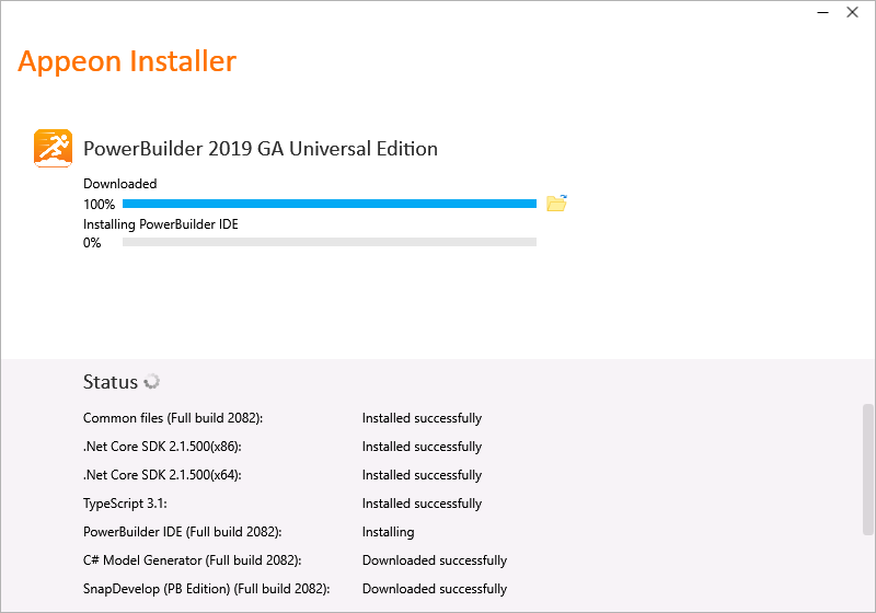The Installer has been running for the last 1.5 hours and has not progressed past the stage of installing Powerbuilder.