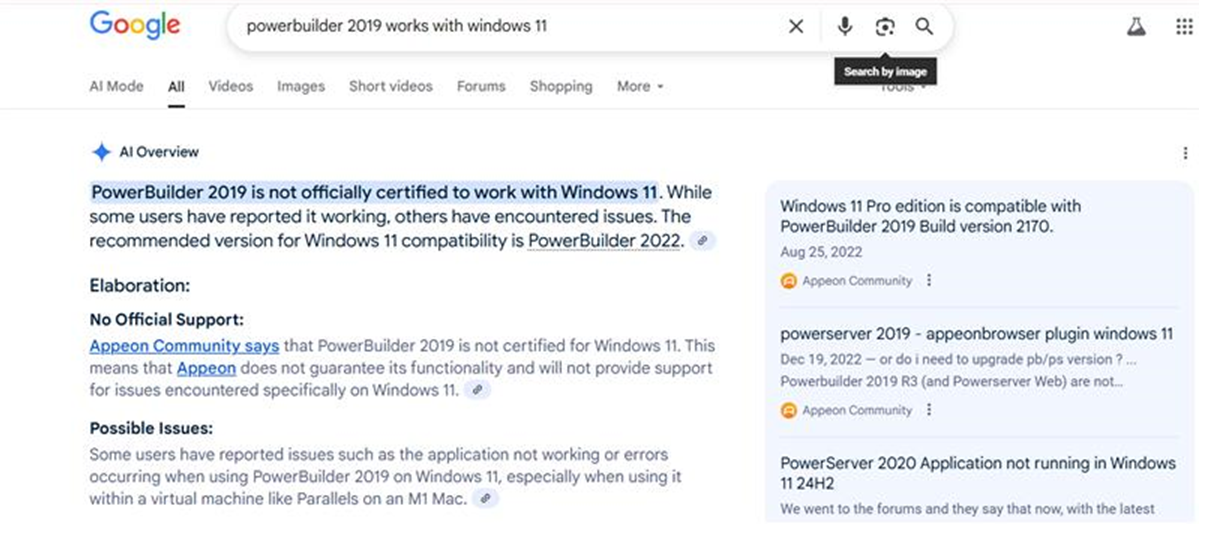 We have encountered an issue with PowerBuilder 2019 MR2170 after the latest Windows 11 update.