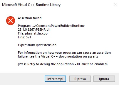 I've identified the command causing the error in the "Activate" event of a window with a sort of toolbar: window lw_pw lw_pw = parentwindow() this.x = 0 this.y = 0 this.width = lw_pw.workspacewidth() //this line causing the error even if i use a fixed number