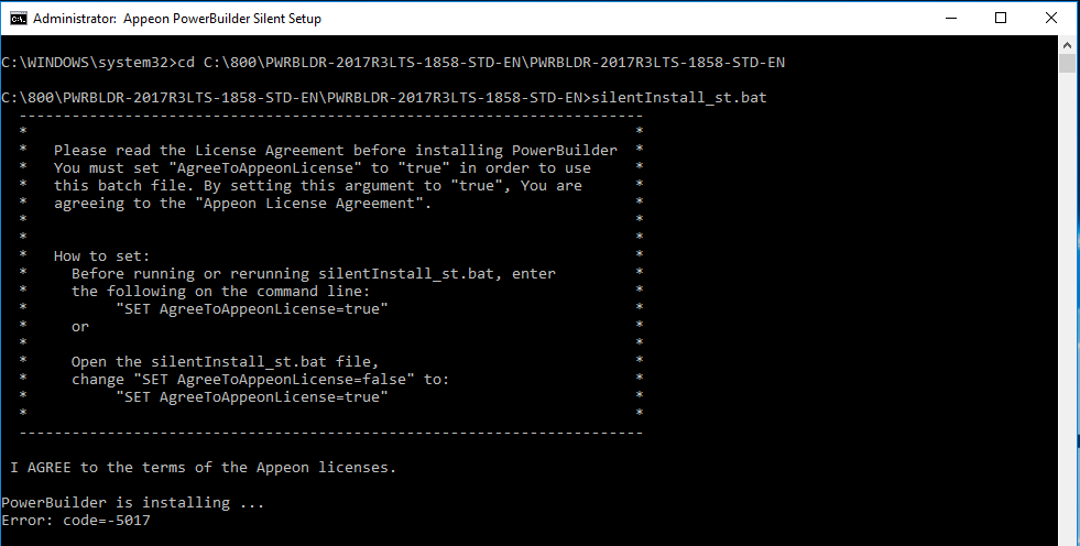 I am getting the below error when trying to install PB Appeon version (PWRBLDR-2017R3LTS-1858-STD-EN). Below error message screenshot. THis is on my laptop which is on Windows 10. The issue started when I tried to reinstall PB after Windo 7 to 10 migration of my laptop. I was able to install it on Windows 7 and was able to work with it previously.
