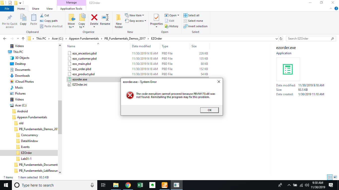 I'm using the Appeon learning material which using PB17 but i downloaded the trial version PB2019 and when I try to run the applications that are enclosed on the demo I get the message: