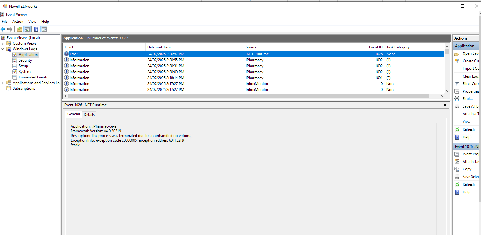 One more client where i.Pharmacy has installed local machine (not in Citrix) and application crash happen when control is transferring one screen to another screen.