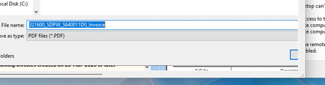 Previously, when saving the PDF output, the generated file name (ls_doc_name) was automatically populated in the Save As dialog. After migrating our front‑end application to the Cloud environment and moving from Adobe Acrobat to Office 365 PDF handling, the filename is no longer auto‑populating.