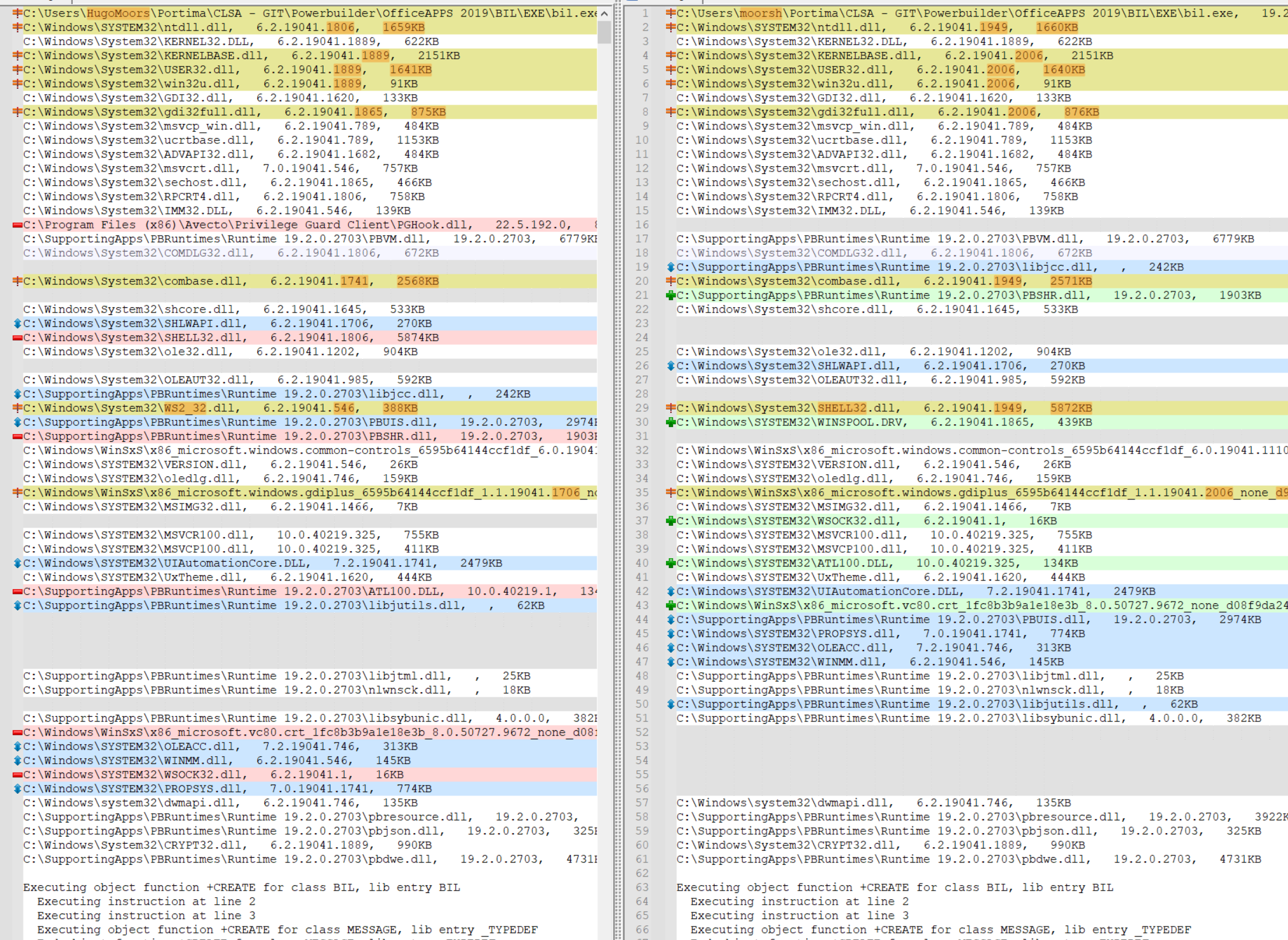 In the PBDEBUG compare screenshots the InTune is on the left red is what the InTune loads extra (green on the right is what the other laptop loads extra)